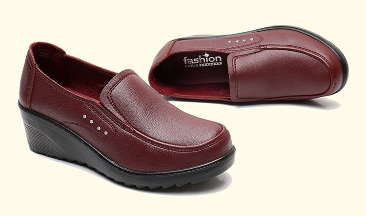 รองเท้าหนังวัวส้นเตารีดแบบสลิปออน