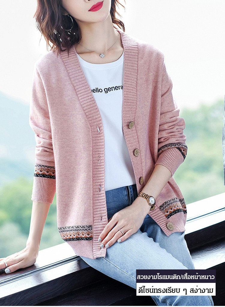 เสื้อคาร์ดิแกนไหมพรม แขนยาว